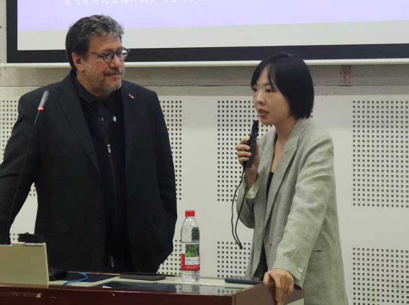 互动环节气氛热烈,同学们围绕“拉美经济与电影创作的关系”“外国导演对本土电影的影响”等话题踊跃提问。甘博亚先生以渊博学识与幽默语言耐心解答,深入浅出的回应令在场师生受益匪浅。